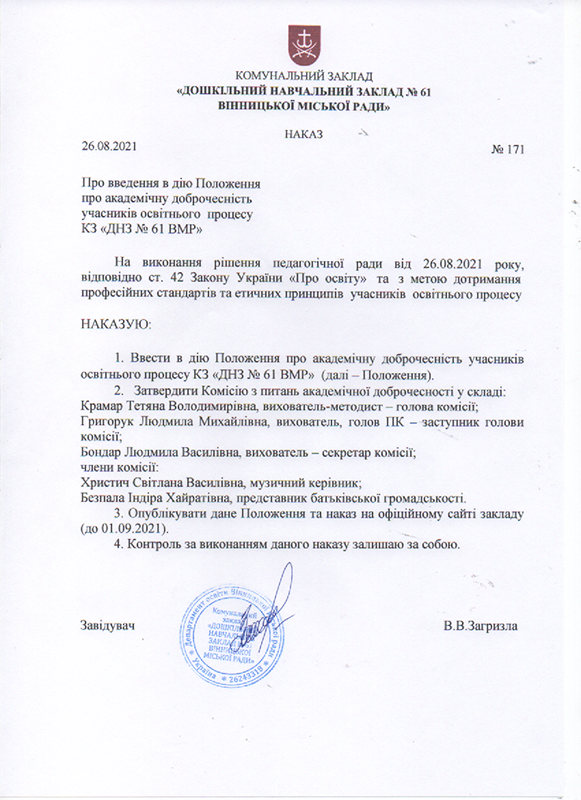 ПОЛОЖЕННЯ ПРО ВЕБ-САЙТ КЗ "ДНЗ №61 ВМР"