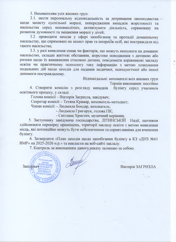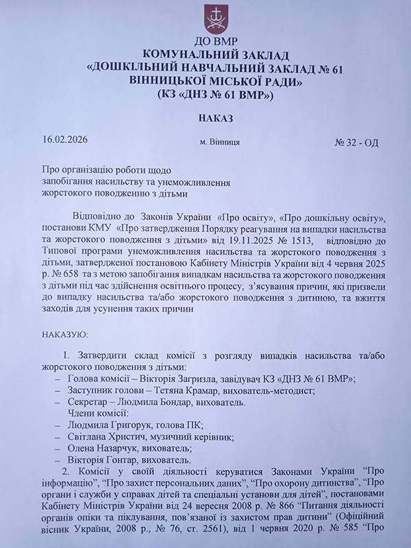 Інструкція про дії персоналу КЗ "ДНЗ №61 ВМР" у разі загрози під час воєнного стану