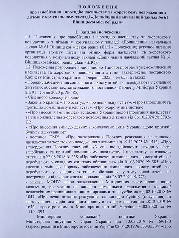 Положення про веб-сайт КЗ "ДНЗ №61 ВМР"